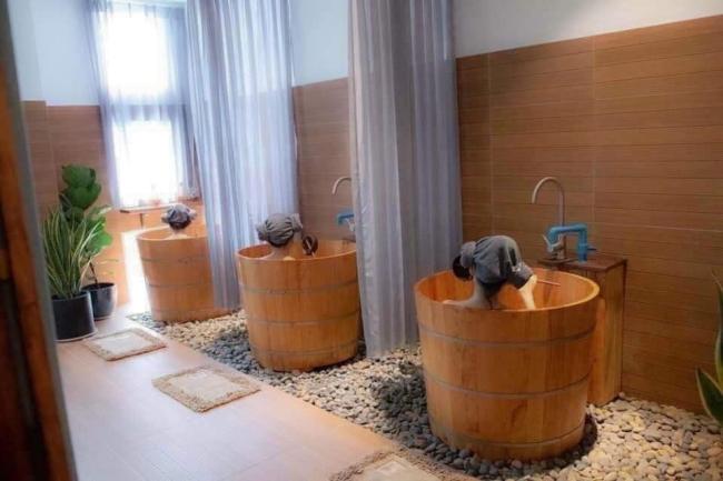 | COMBO HOA QUÊ 4단계로 구성된 프로세스입니다: 증기 목욕, 목욕탕, 핫스톤 바디 마사지, 헤어 스파와 얼굴 마사지 |